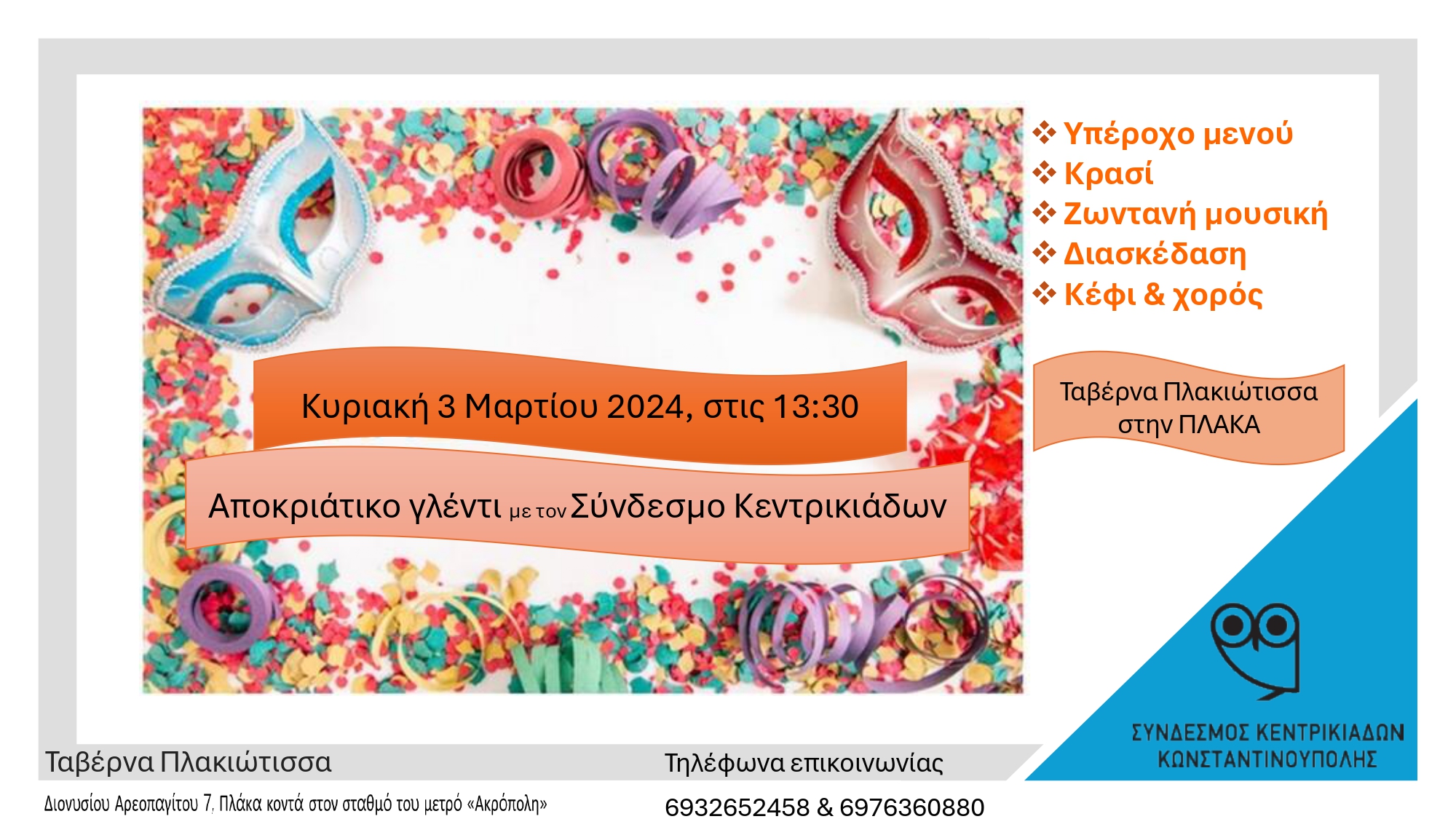 Το Αποκριάτικο Γλέντι του Συνδέσμου μας μεσημέρι στην Πλάκα.