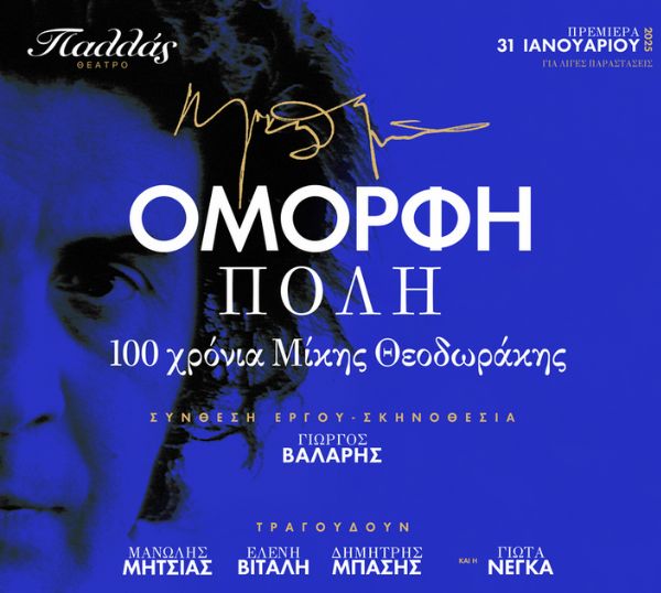 Θα παρακολουθήσουμε το έργο "Όμορφη Πόλη" - 2025 Χρονιά αφιερωμένη στο Μίκη Θεοδωράκη. Μόνο για λίγες παραστάσεις στο Θέατρο ΠΑΛΛΑΣ. Ώρα 19:00. Παίζουν Λυδία...